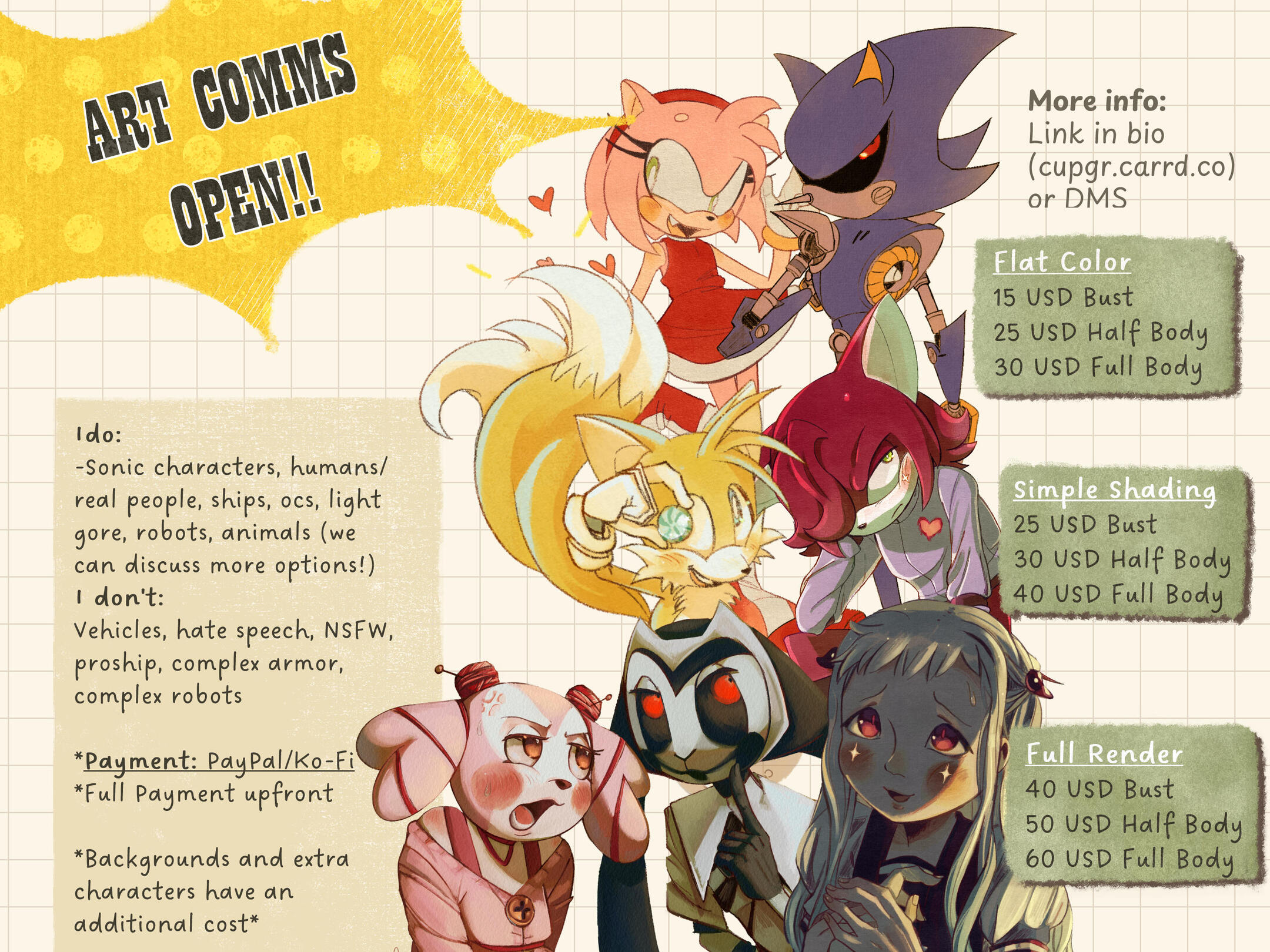 •The payment is upfront via PayPal or Buy Me a Coffee (ko-fi donations)